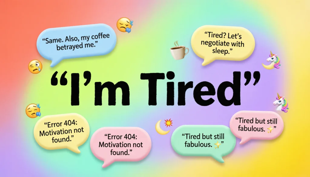 Keep your replies playful, empathetic, or confident depending on the context. Save this list, mix and match, and make every “I’m tired” moment fun, memorable, and scroll-stopping. Text with personality, and watch how your friends and DMs light up with laughter and connection.